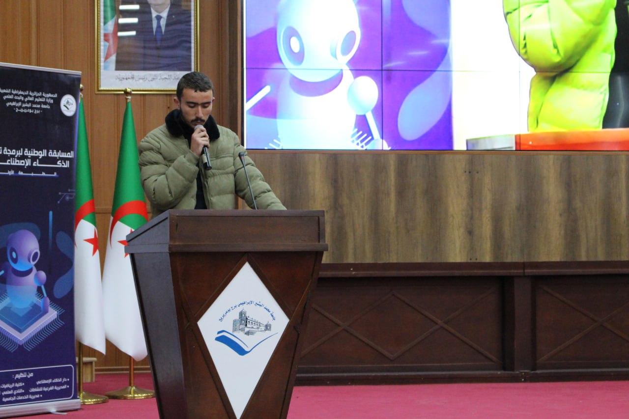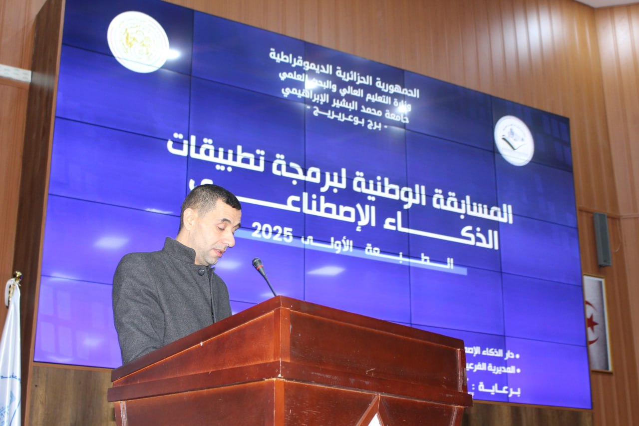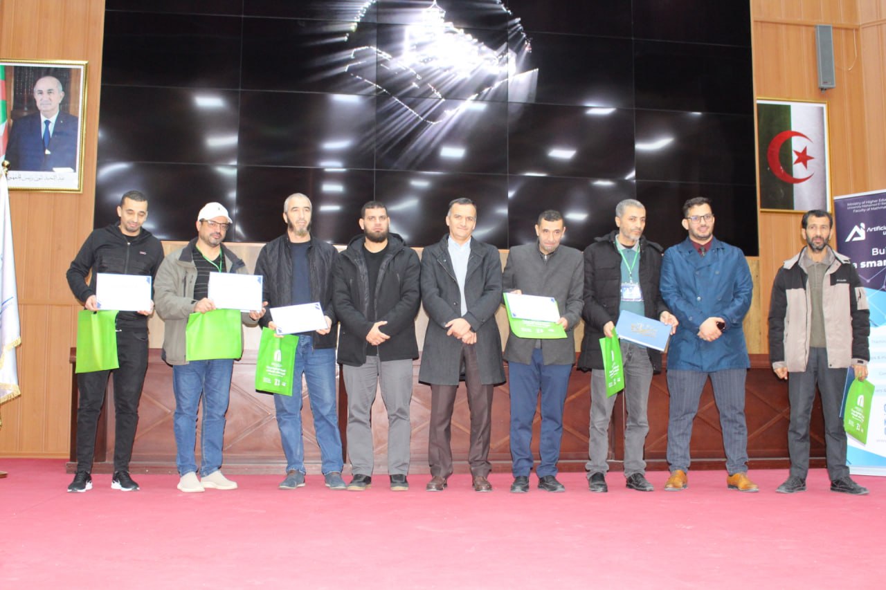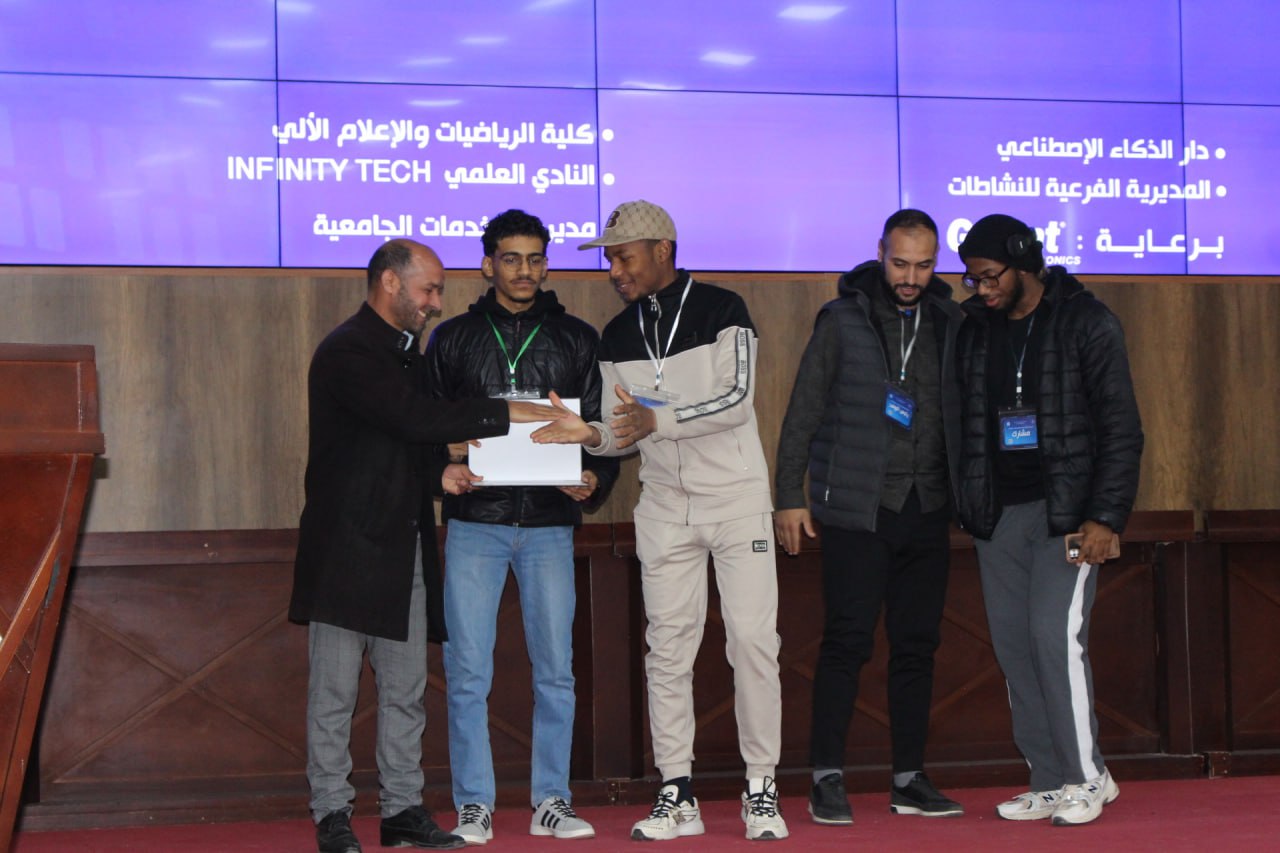 أشرف السيد مدير الجامعة البروفيسور علي بوقرورة على فعاليات اختتام المسابقة الوطنية لبرمجة تطبيقات الذكاء الاصطناعي، حيث تم خلال حفل الاختتام الإعلان عن النتائج وتكريم الفائزين، والتي جاءت على النحو الآتي: