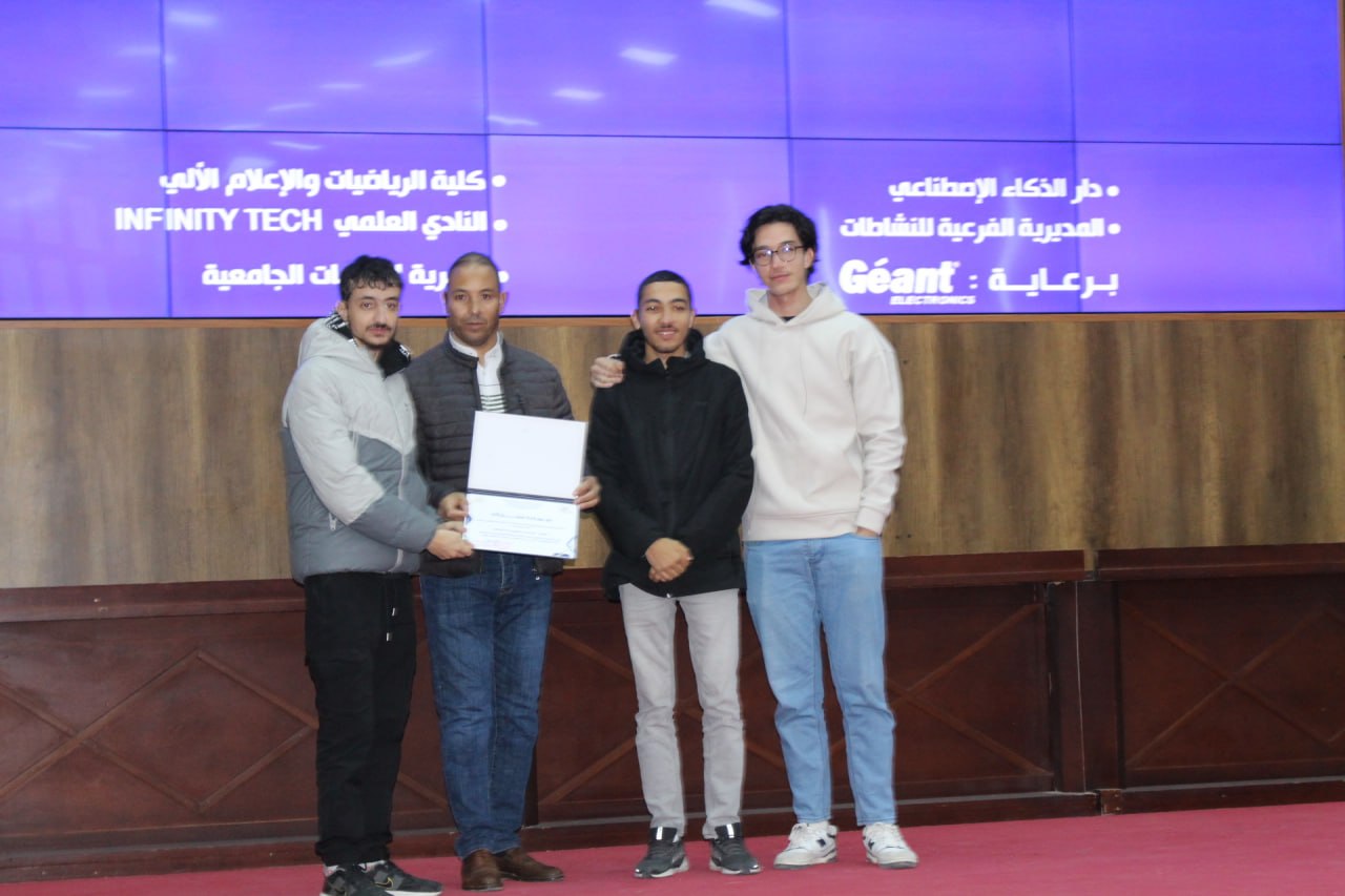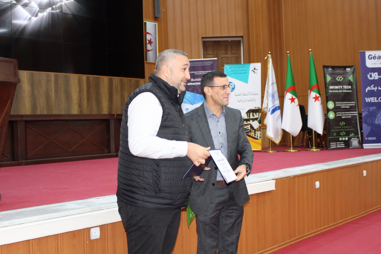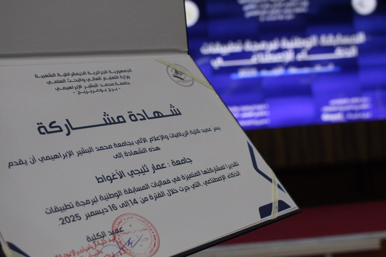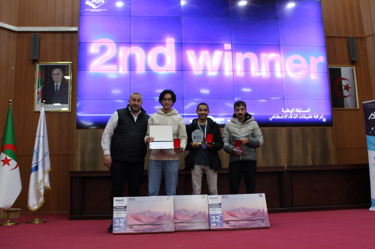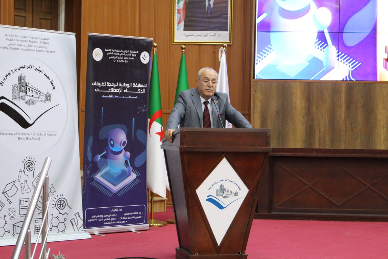 أشرف السيد مدير الجامعة البروفيسور علي بوقرورة على فعاليات اختتام المسابقة الوطنية لبرمجة تطبيقات الذكاء الاصطناعي، حيث تم خلال حفل الاختتام الإعلان عن النتائج وتكريم الفائزين، والتي جاءت على النحو الآتي: