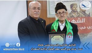 تحت إشراف السيد مدير الجامعة، البروفيسور علي بوقرورة، وفي أجواء مفعمة بروح الوطنية والاعتزاز، أحيت جامعة محمد البشير الإبراهيمي اليوم، 18 مارس 2026، الذكرى الرابعة والستين لعيد النصر المجيد، وذلك بقاعة المناقشات لكلية العلوم الانسانية والاجتماعية.