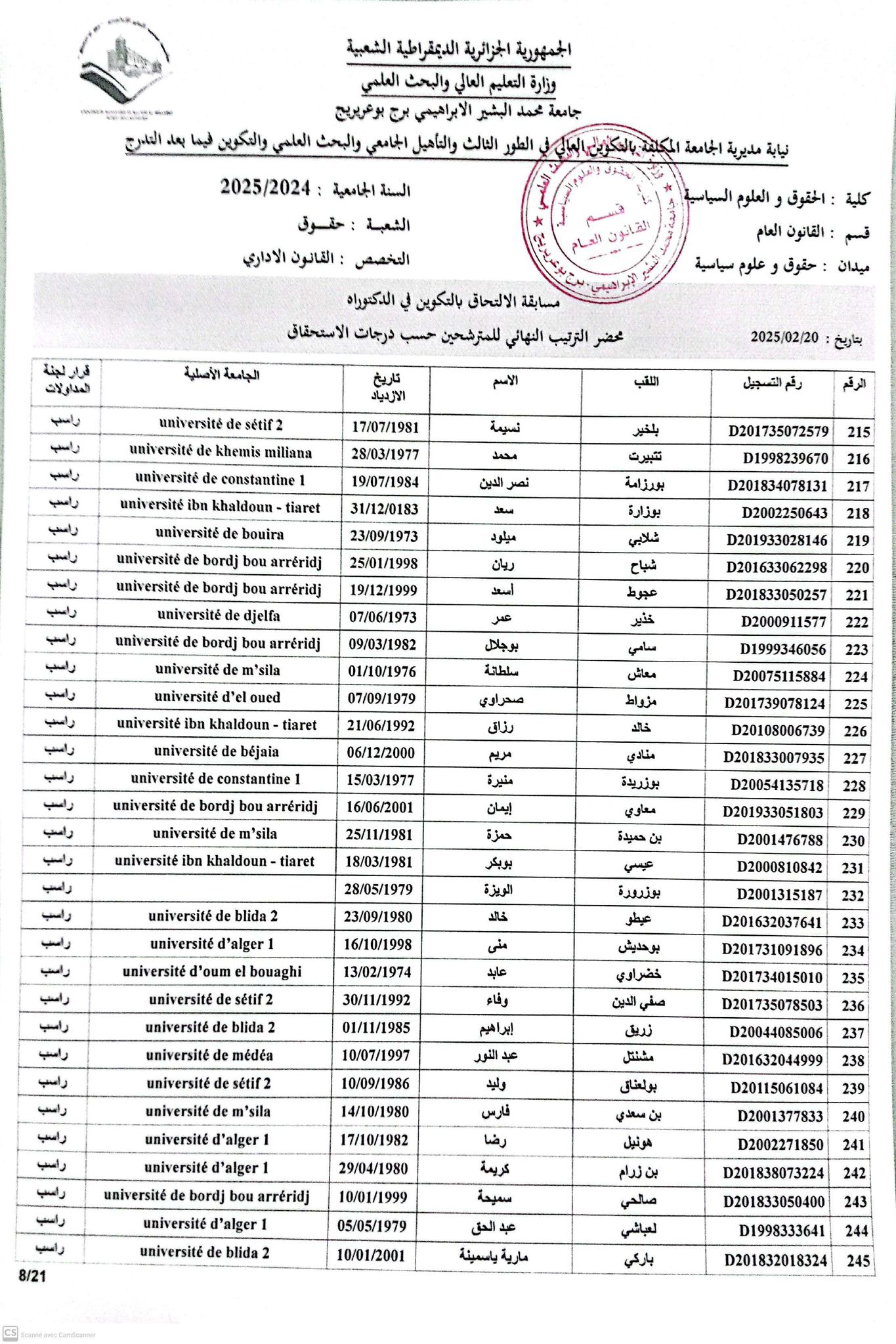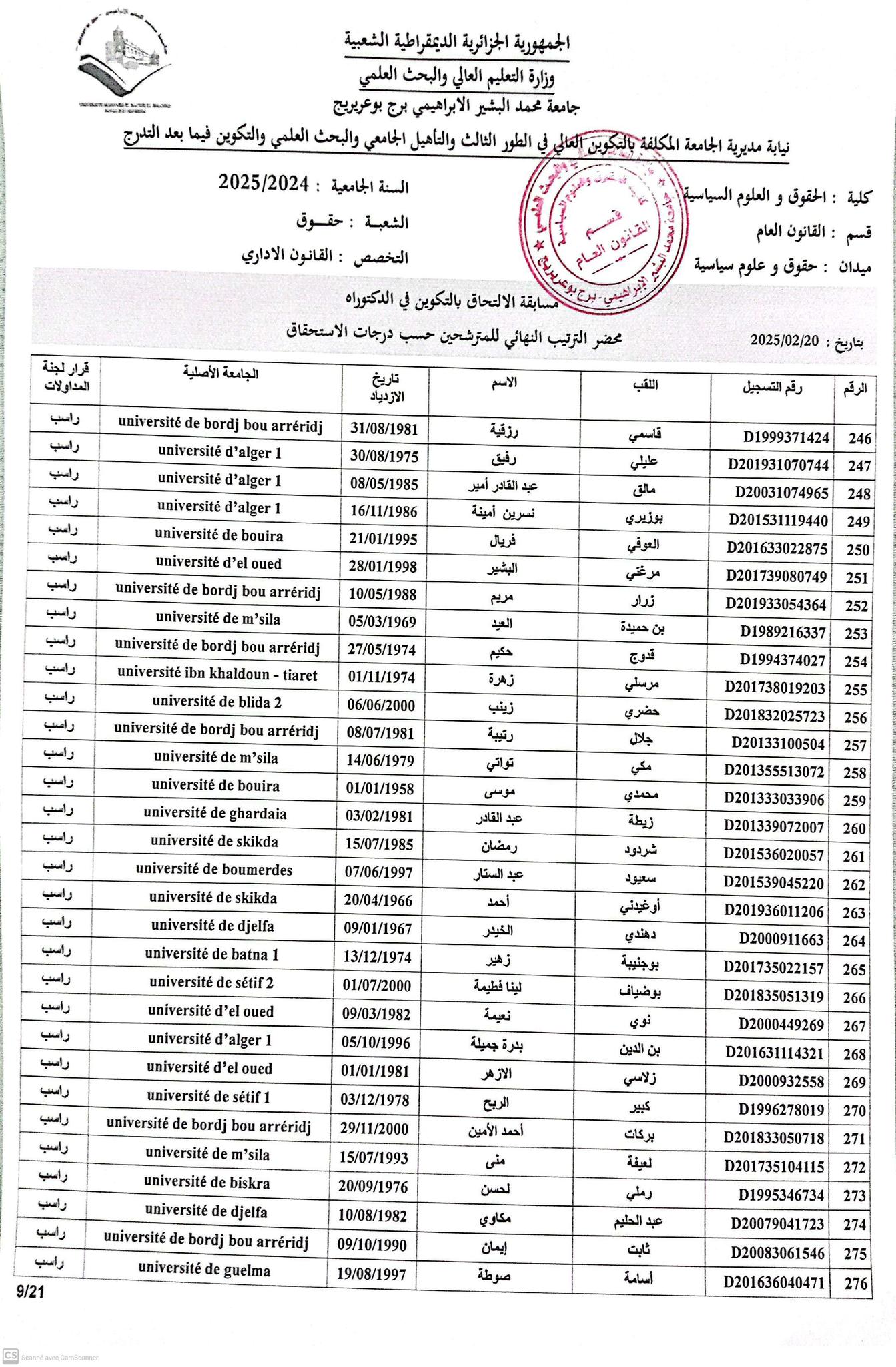 قوائم الناجحين في مسابقة الدكتوراه ليوم الخميس 20 فيفري 2025