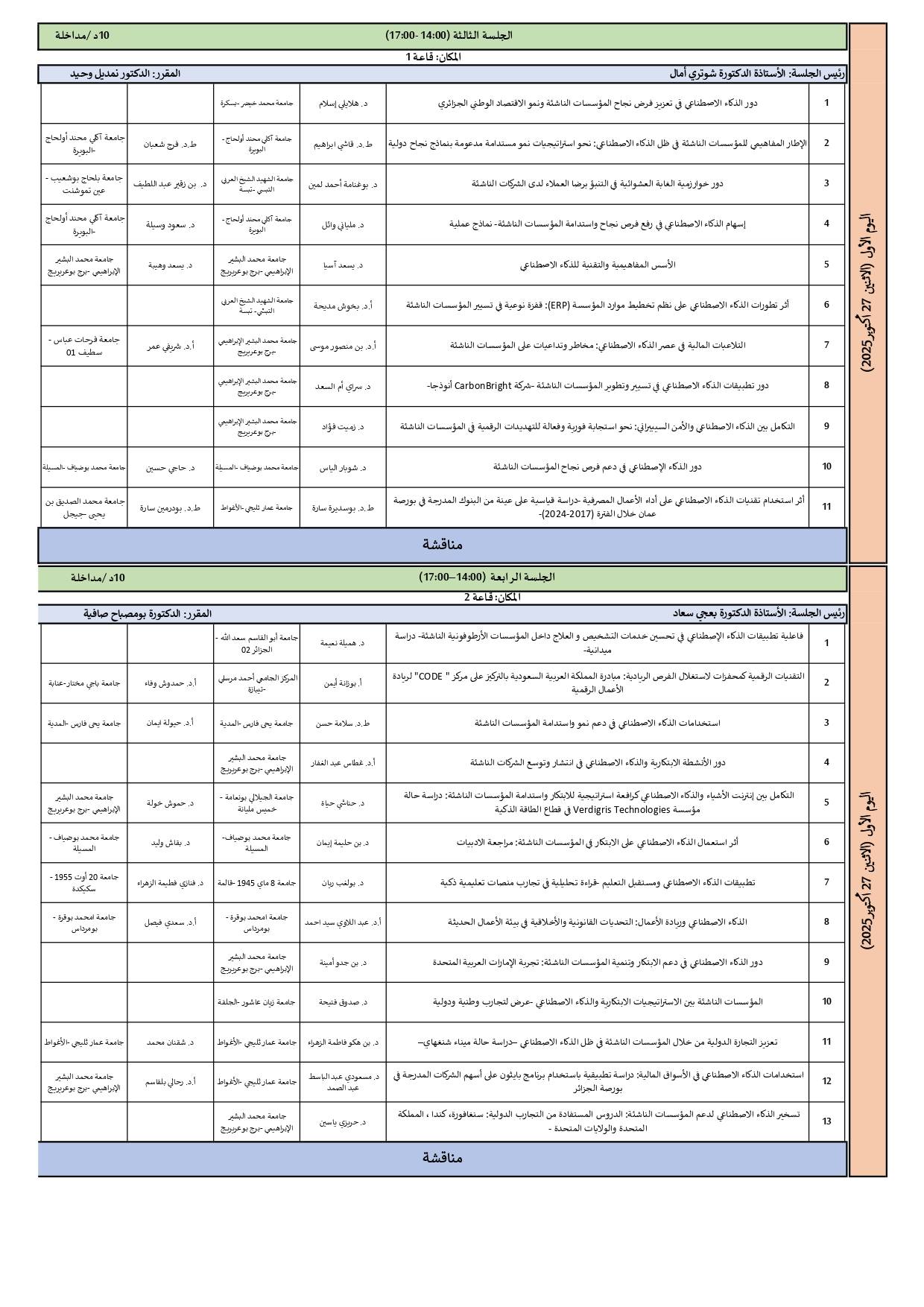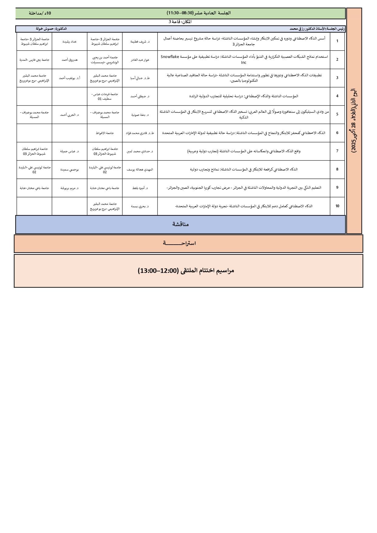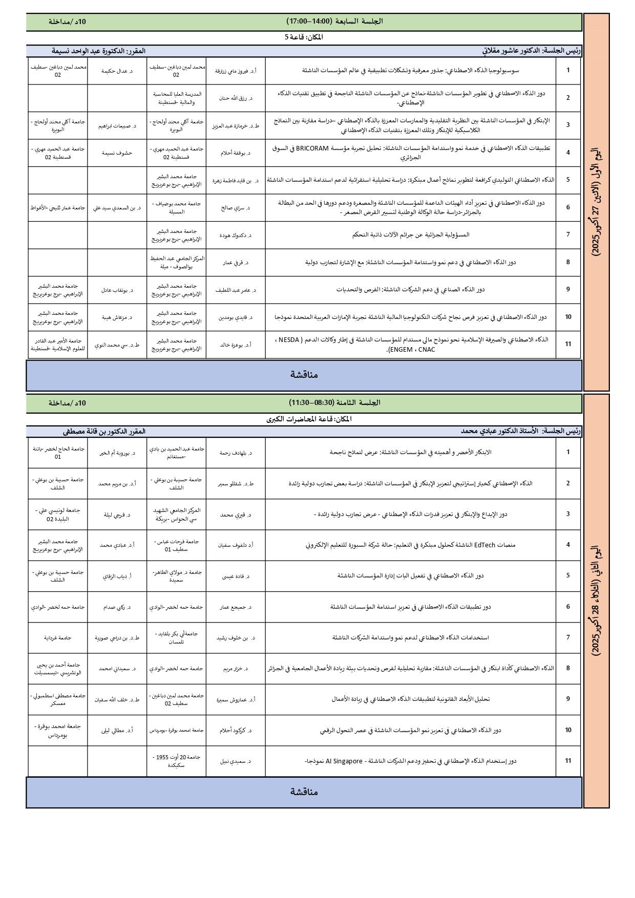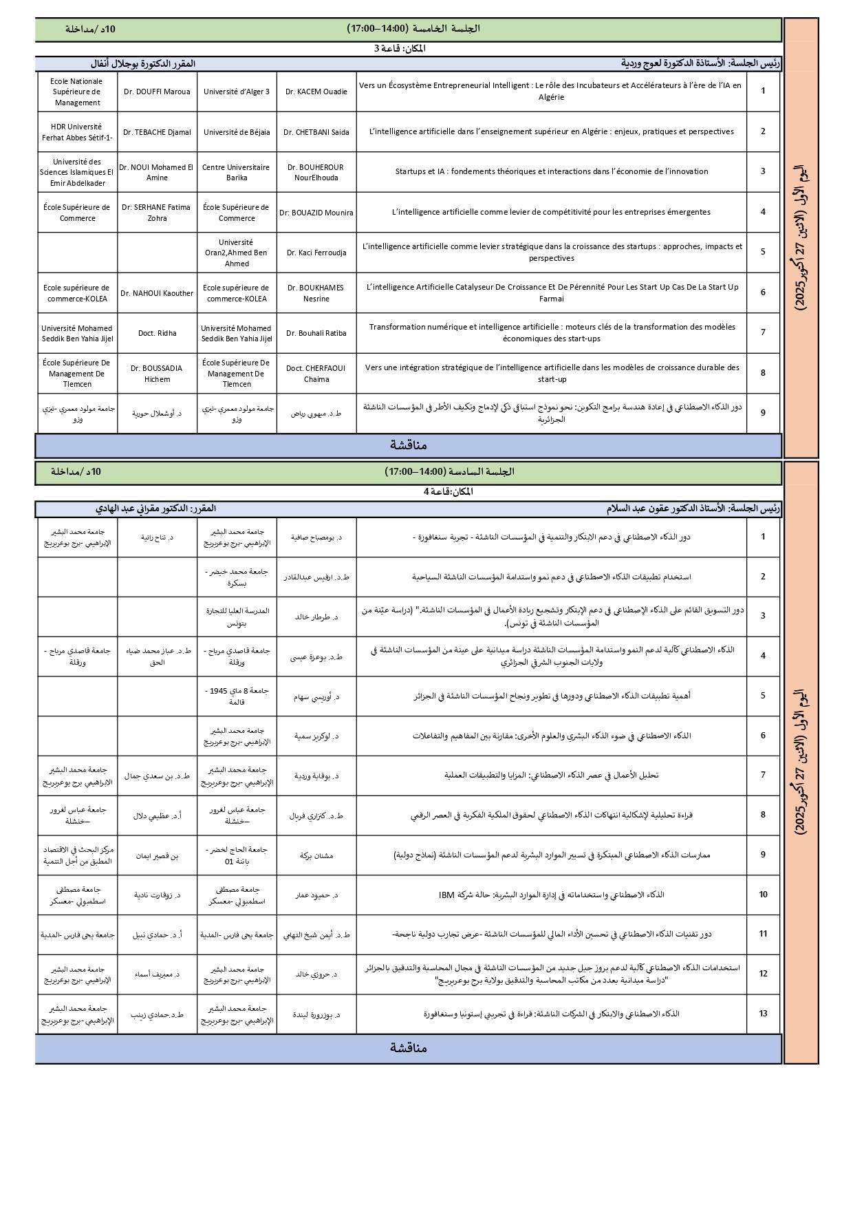 الملتقى الدولي الحضوري الموسوم" الذكاء الاصطناعي والابتكار في المؤسسات الناشئة"؛ يومي 27-28 أكتوبر 2025_بقاعة المحاضرات الكبرى للجامعة.