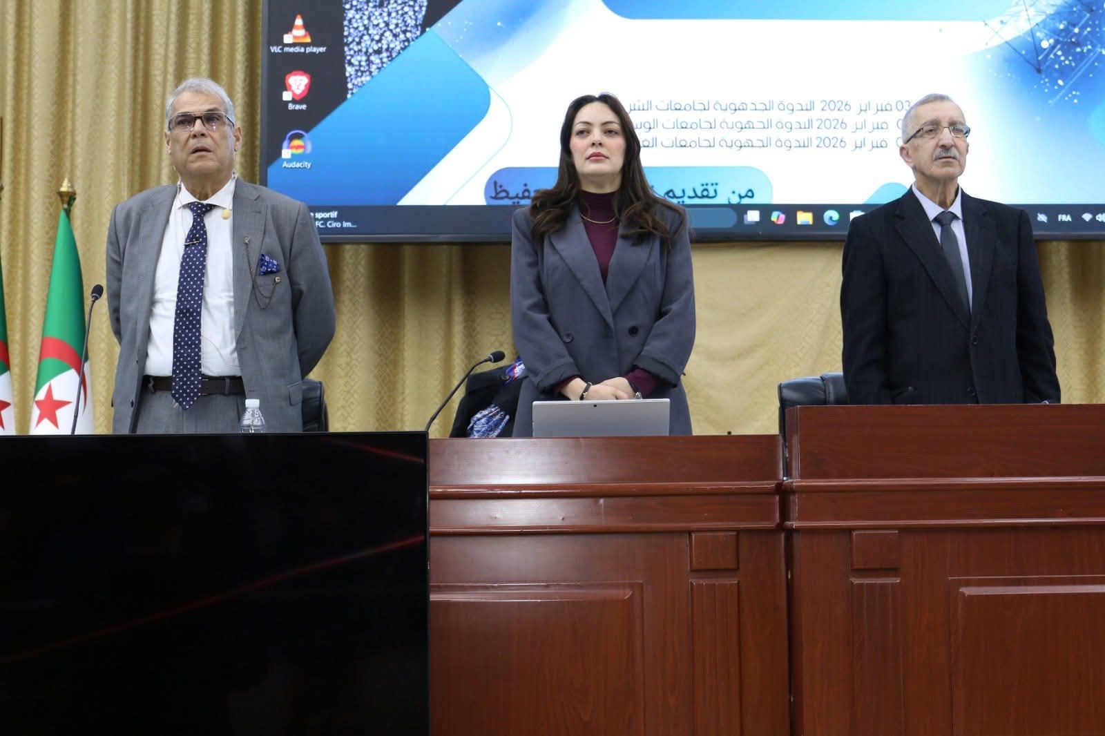 تحت اشراف البروفيسور محمد الهادي لطرش رئيس الندوة الجهوية لجامعات الشرق اليوم الثلاثاء 03 فيفري 2026 بجامعة سطيف 1 مقر الندوة الجهوية الذي حضره نواب مدراء المؤسسات الجامعية المكلفين بالبيداغوجيا، مدراء الحاضنات، مدراء دور المقاولاتية، مدراء مراكز دعم التكنولوجيا و الابتكار لناحية الشرق